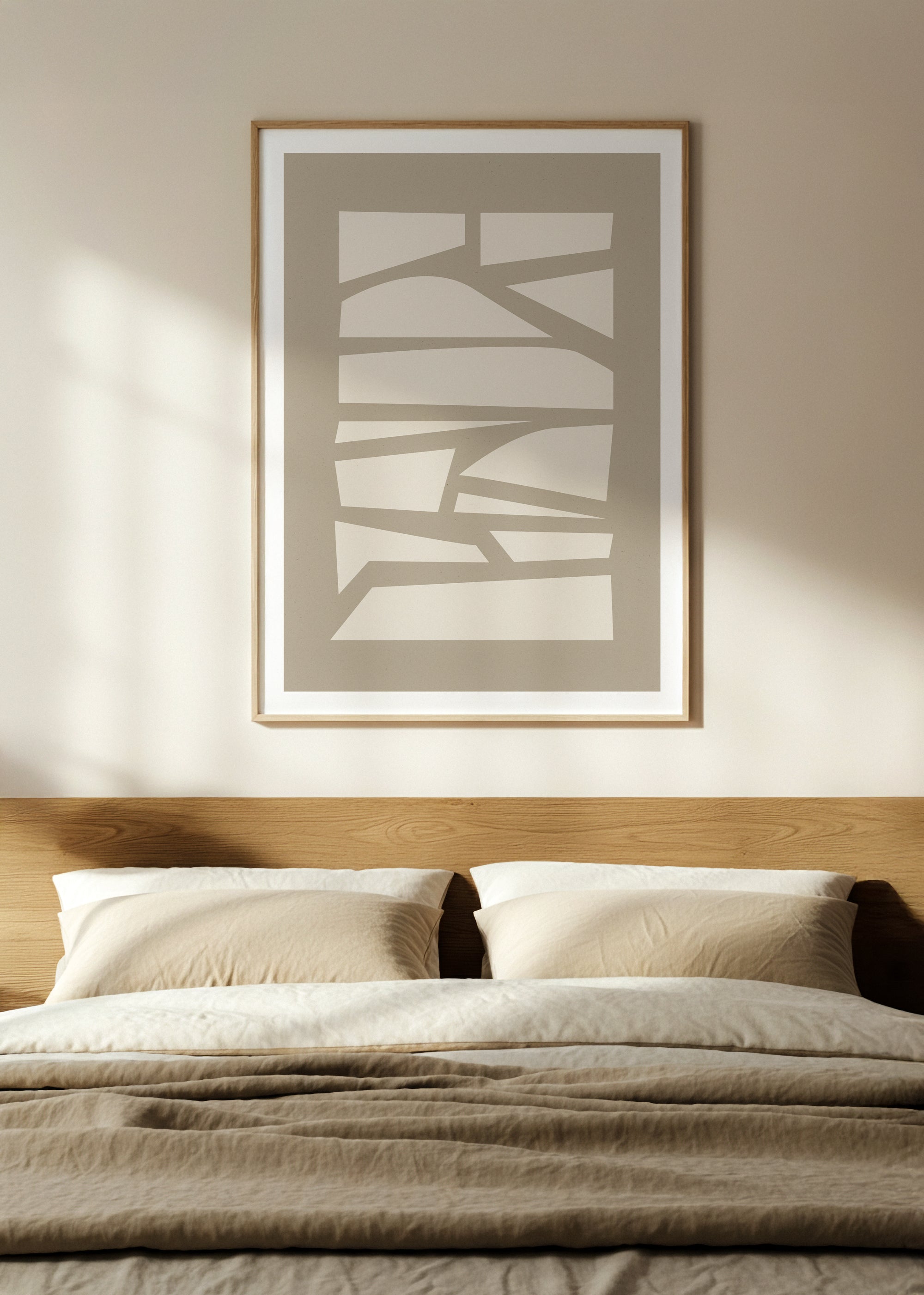Blocks Study is a minimalist abstract print inspired by architectural forms and organic balance. Soft beige tones and geometric shapes create a sense of quiet rhythm, making it a perfect statement piece for modern, Scandinavian, or Japandi interiors.