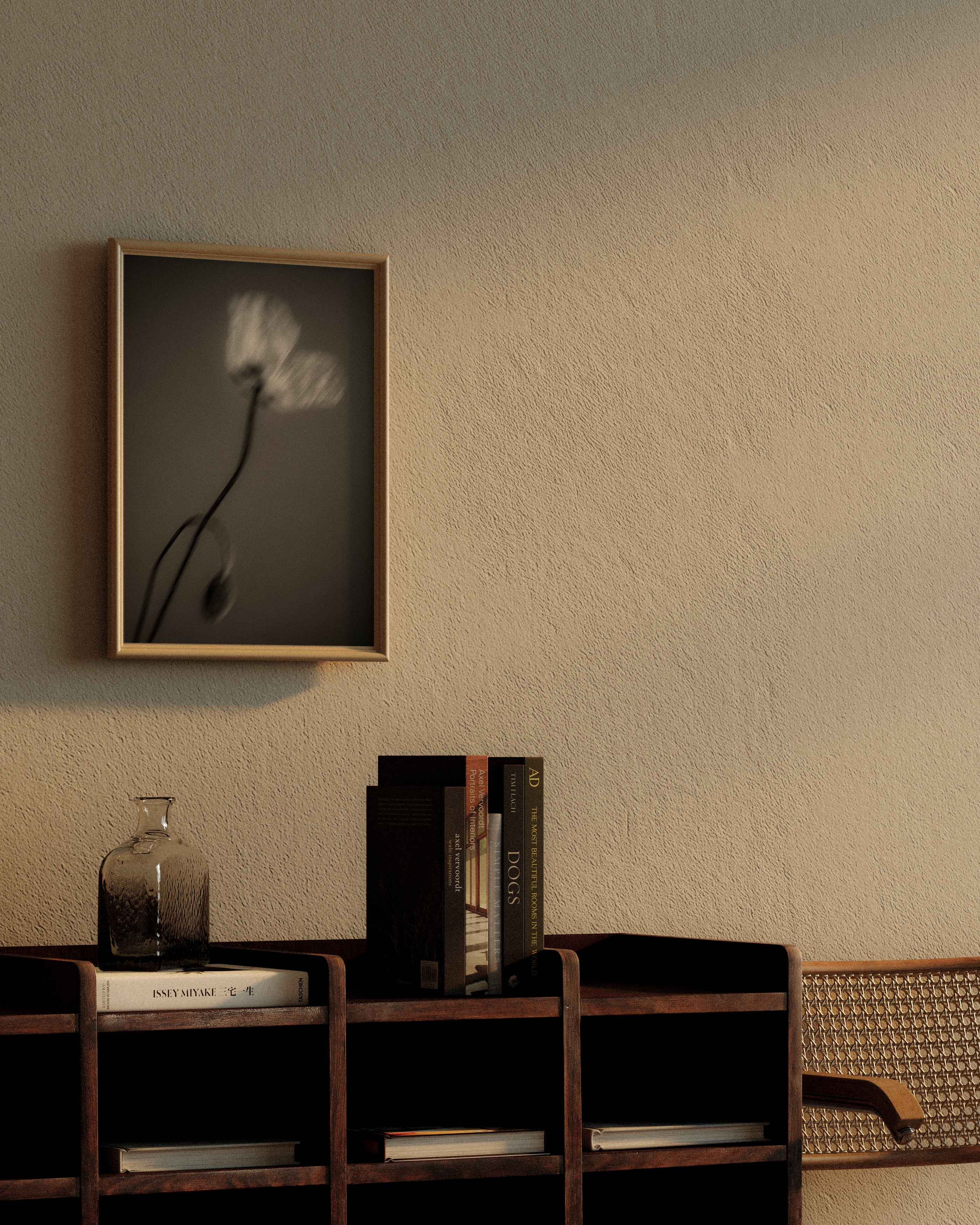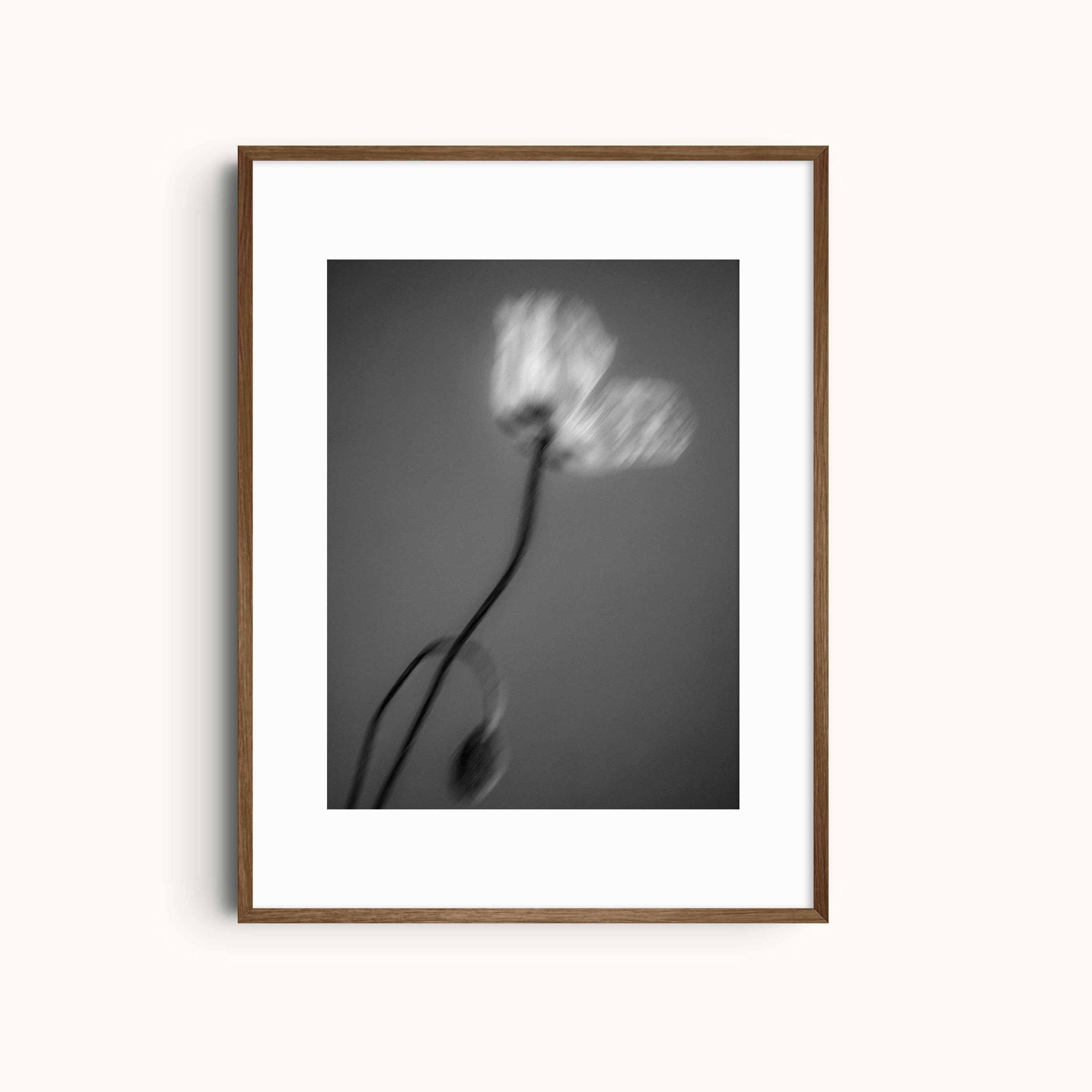 Timeless Shade is a minimalist floral print portraying an elegant poppy flower in black and white, softly blurred to create a dreamlike, ethereal effect. The monochrome palette brings a sense of sophistication and timeless beauty, while the gentle blur invites stillness and reflection. Perfect for modern, Japandi, or neutral-toned interiors, it adds a refined and contemplative touch to any space. A piece that speaks to the quiet poetry of nature in its most graceful form.