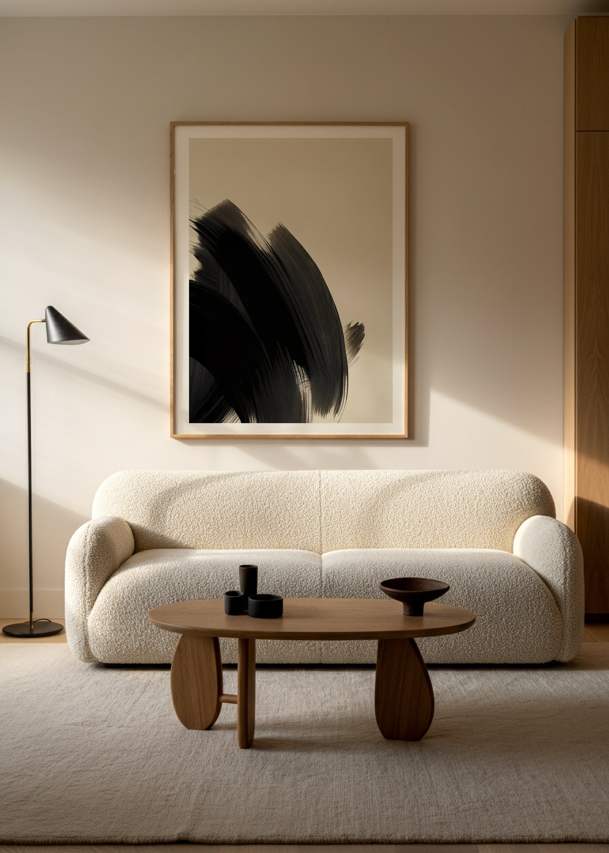 Contrast Brush is a modern Japandi abstract art print that captures movement and balance through bold black brushstrokes on soft neutral tones. Inspired by Japanese calligraphy and Scandinavian minimalism, it blends raw energy with refined simplicity, creating a timeless visual statement.