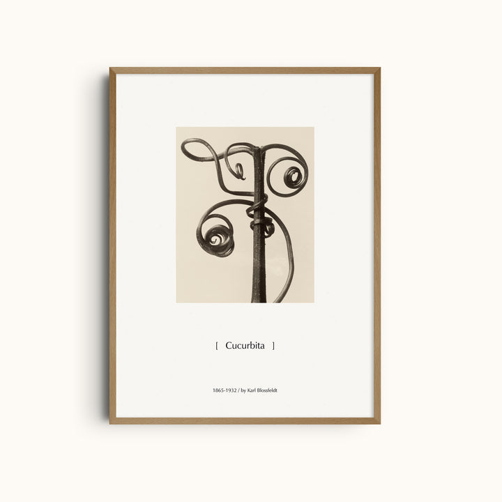 Cucurbita by Karl Blossfeldt is a classic modernist botanical photography print created between 1865 and 1932, showcasing the sculptural tendrils of the cucurbit plant in striking detail. Through extreme close-up and controlled lighting, Blossfeldt transforms natural growth into an abstract, almost architectural form, revealing rhythm, symmetry, and organic precision.