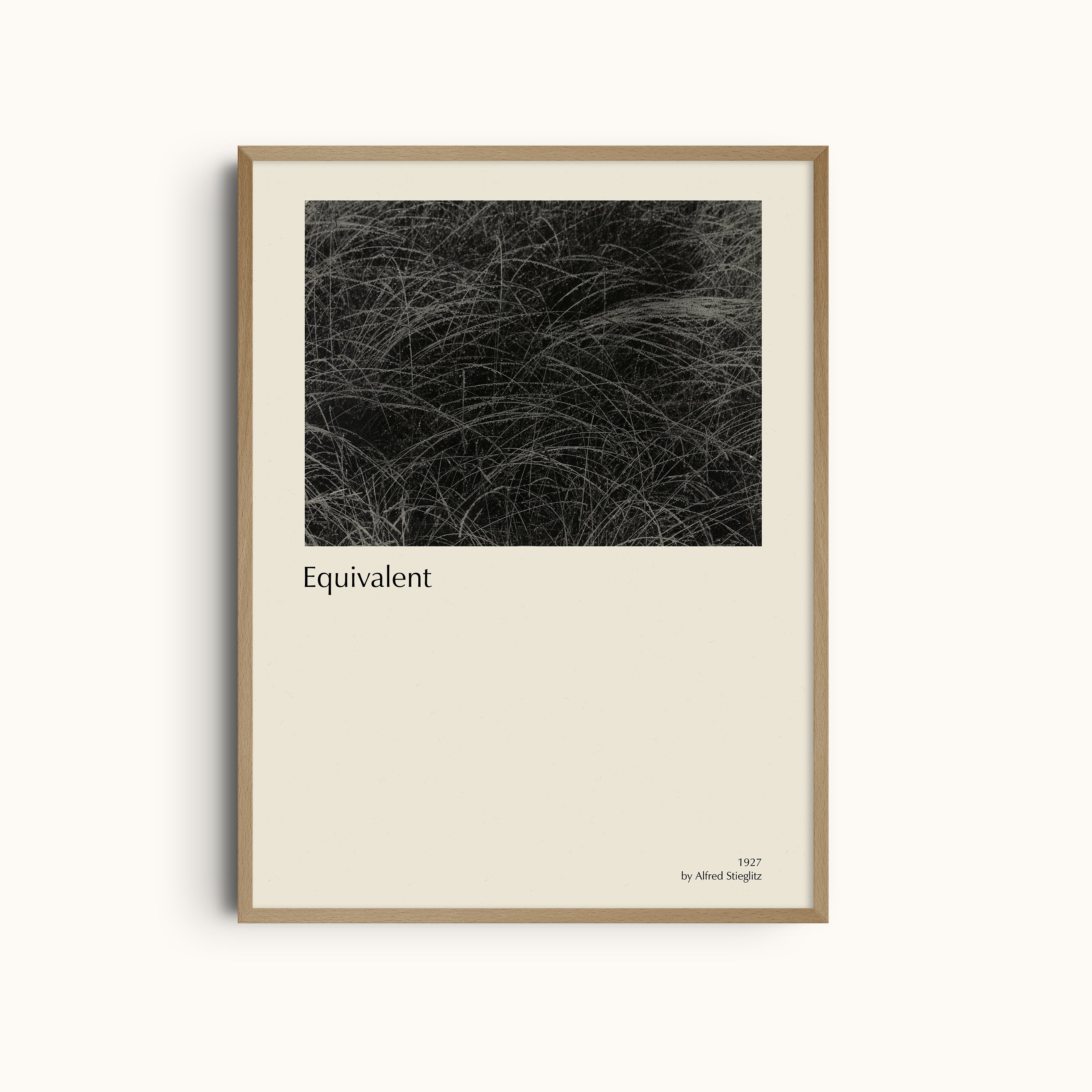 Equivalent is a pioneering abstract photography print by Alfred Stieglitz, created in 1927 as part of his influential Equivalents series. The photograph depicts intertwined grasses transformed into a rhythmic, almost meditative composition, where texture, movement, and tonal contrast replace literal representation. Nature becomes abstraction, inviting quiet contemplation rather than narrative.