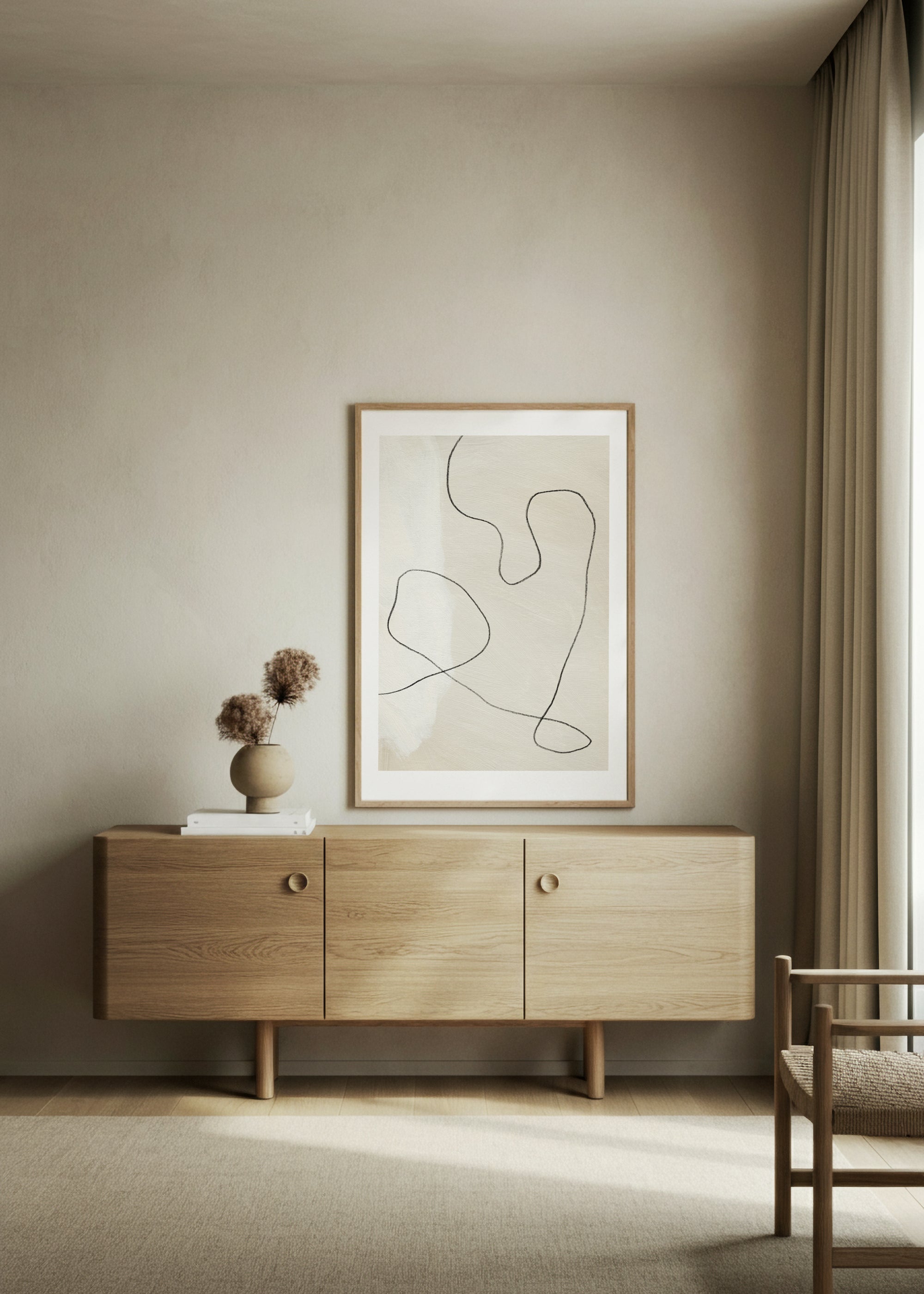 The soft beige tones and delicate black lines make it a timeless piece for modern, minimalist, and Scandinavian interiors. Perfect for styling in a living room, hallway, or creative workspace, it brings gentle rhythm and refinement to your wall decor.