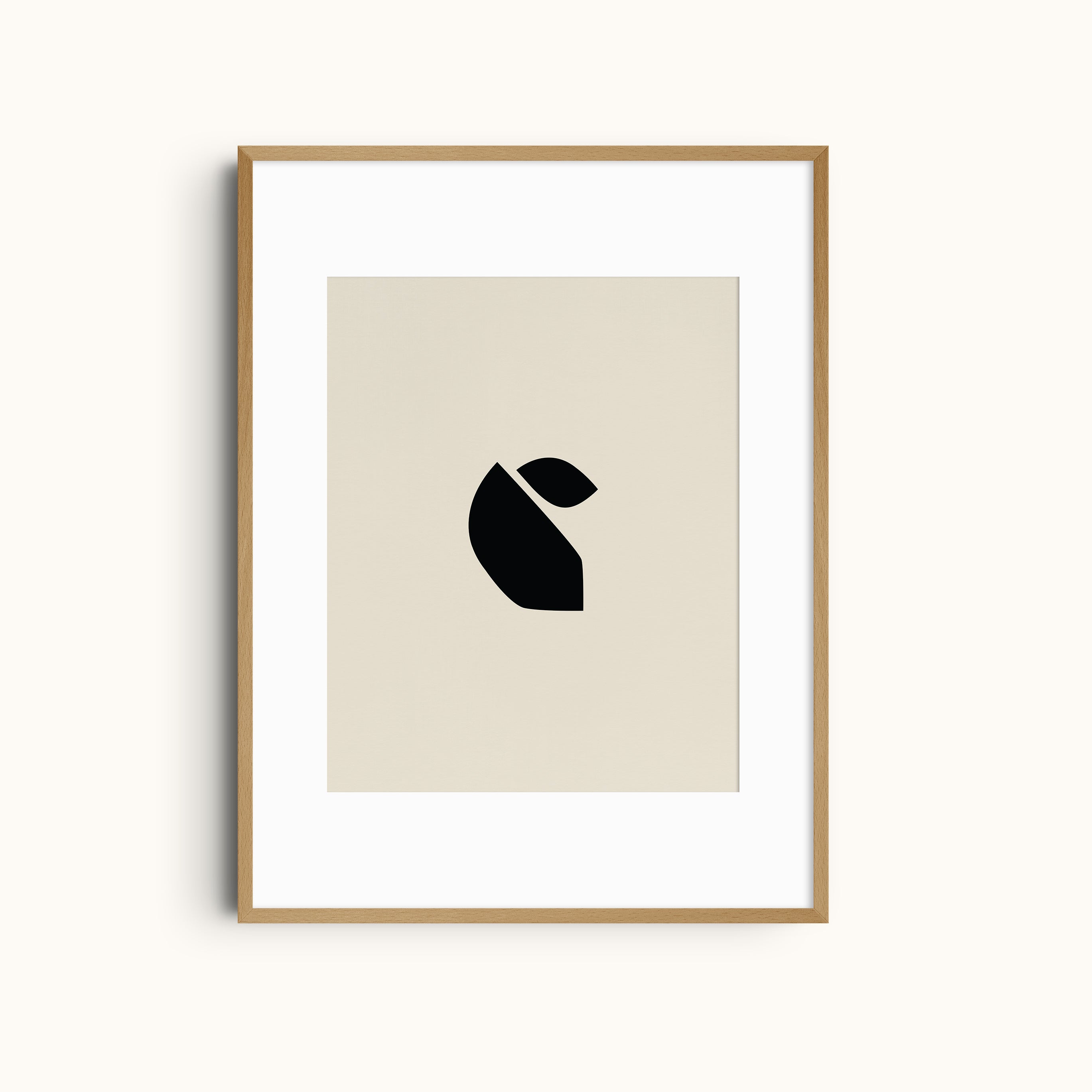 Geometric Leaf is a minimalist art print that merges natural form with geometric precision. A single abstract shape evokes the simplicity of a leaf, symbolizing calm growth and renewal. Its soft beige background and bold black composition bring quiet contrast and balance to any modern interior.