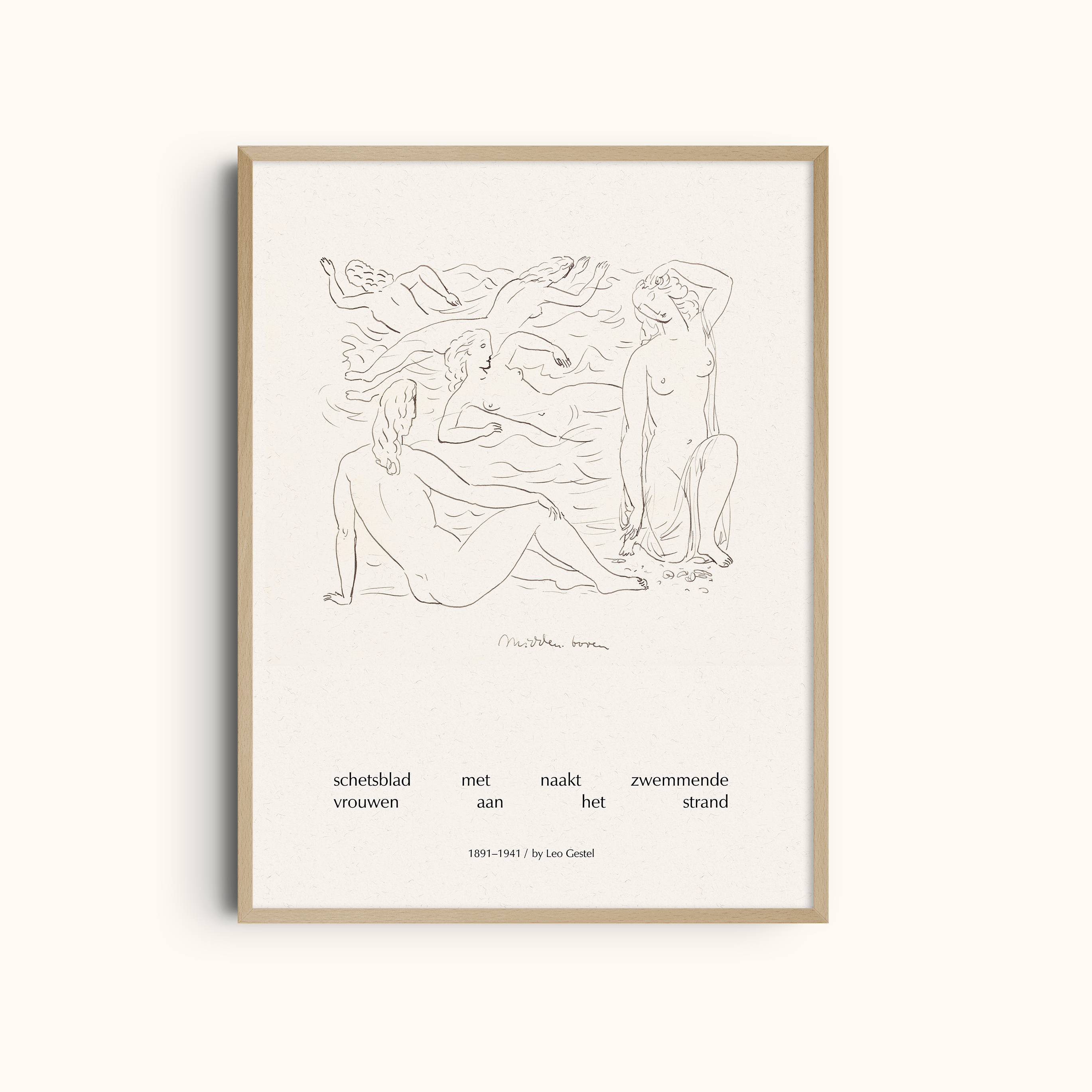 Figurative Line Drawing | Nude Bathers Coastal Art Print by Leo Gestel