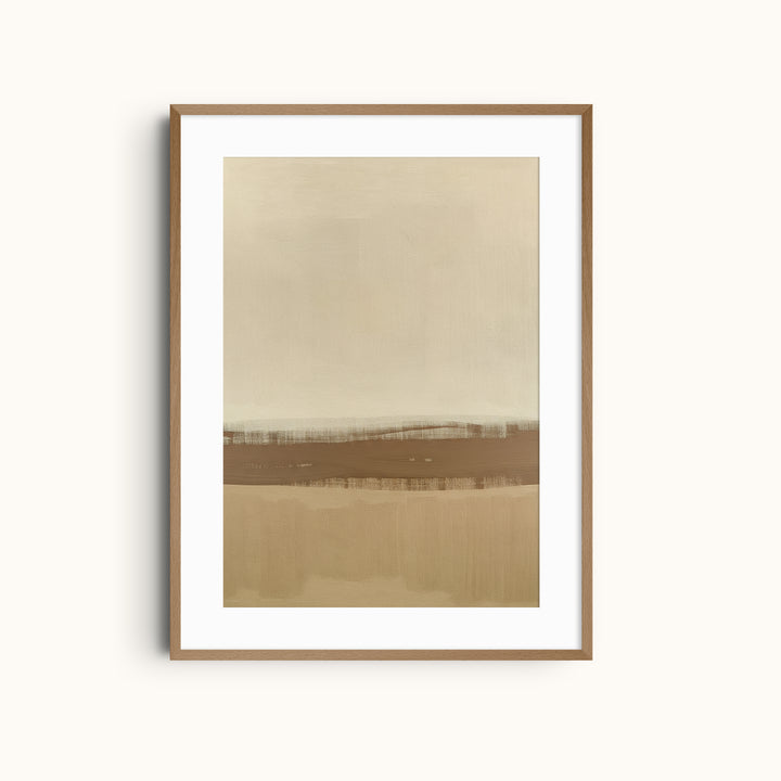 Resting Field is a minimalist abstract art print that captures the quiet balance between earth and air. Inspired by the soft tones of natural landscapes, this piece blends muted beige and warm brown gradients to create a sense of stillness and grounded calm. Its subtle horizon-like composition evokes the serenity of open fields at dusk, inviting slow reflection and peace into any space.