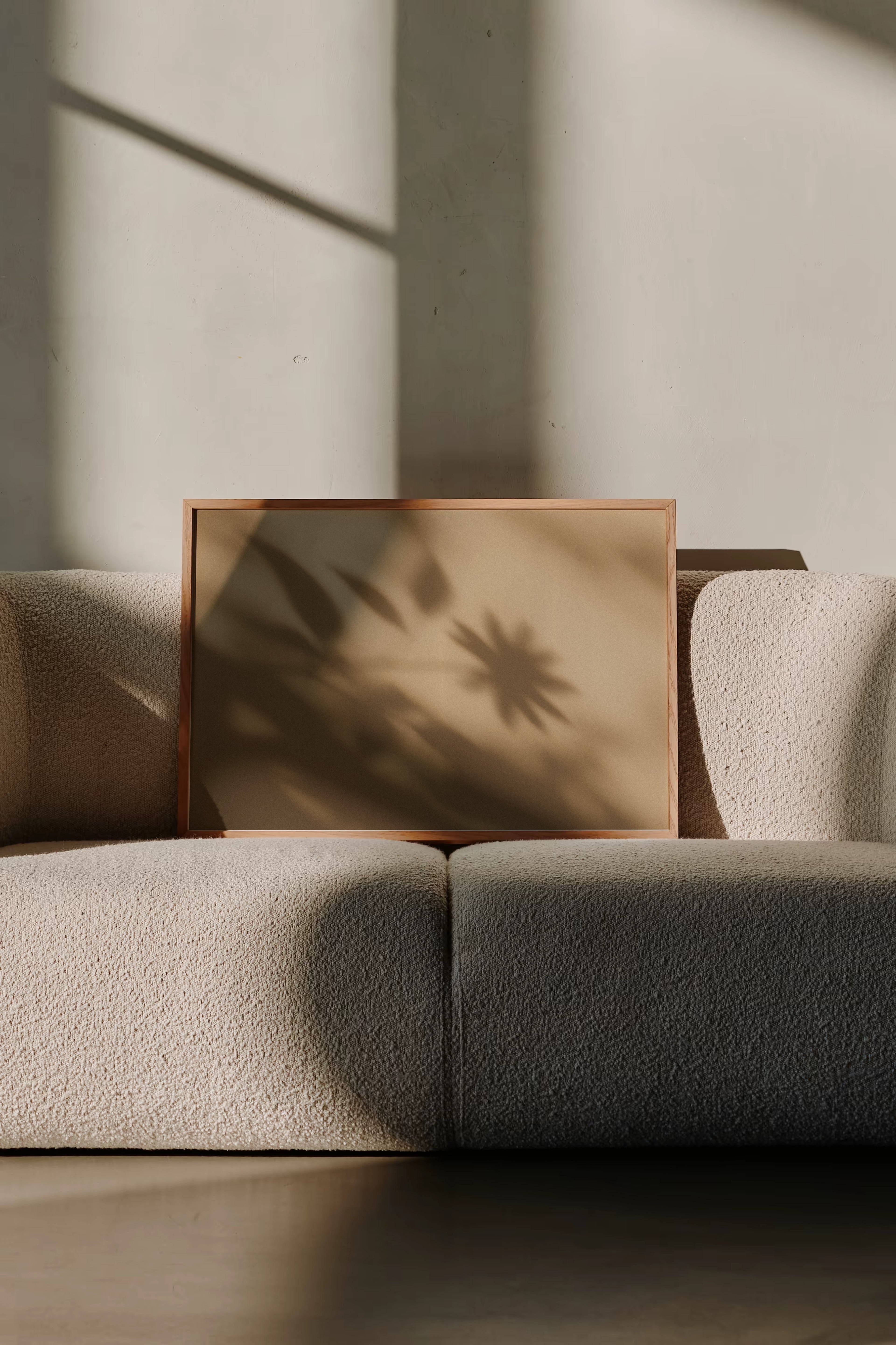 Melted Sunflower is a minimalist wall art print featuring the soft, blurred shadow of a sunflower cast against a wall in rich ochre-orange tones. The warm, sun-soaked palette brings a sense of comfort, optimism, and summer nostalgia, making it a perfect addition to Japandi dining rooms, Scandinavian kitchens, or warm minimalism living spaces. Its abstract shadow form adds depth and artistic intrigue while keeping a calm, nature-inspired aesthetic. An inviting piece for interiors that embrace warmth, light, and organic beauty.
