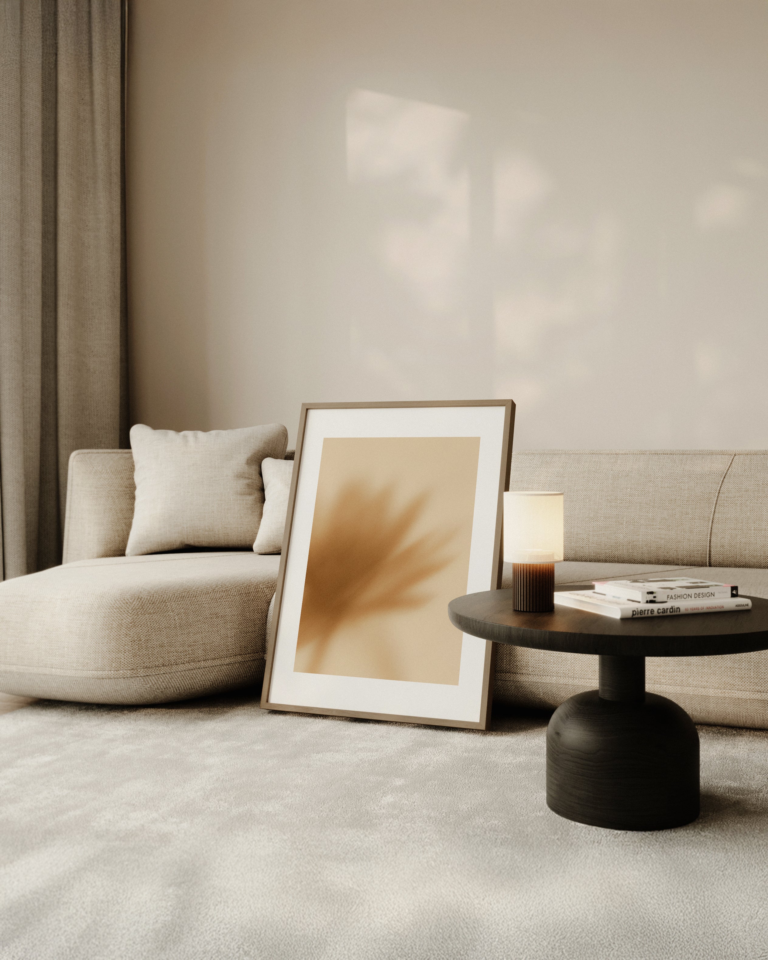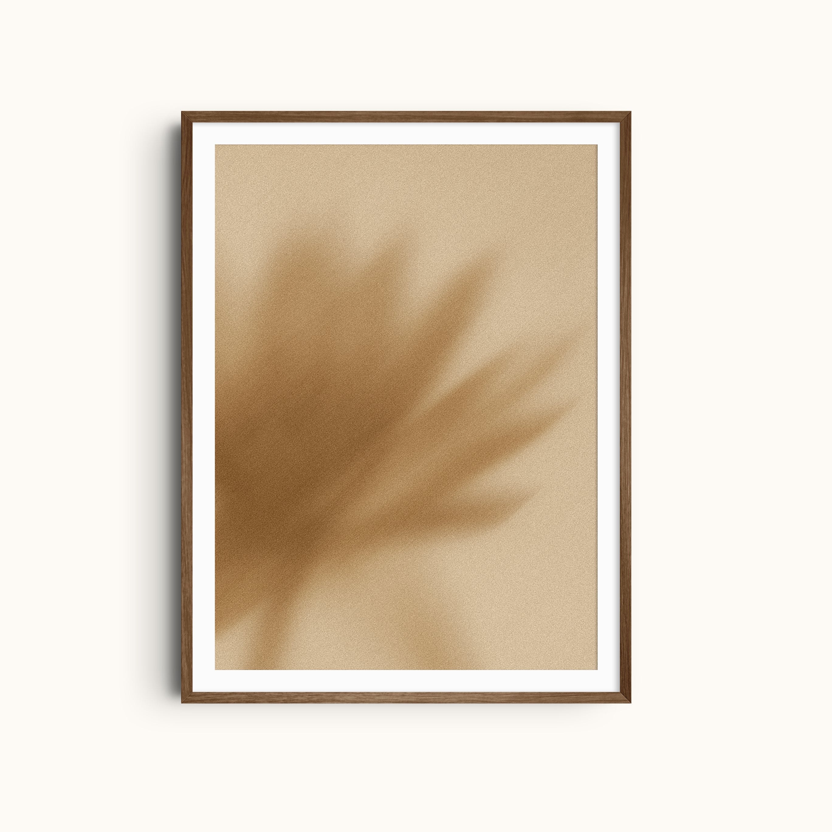 Grain Terracotta is a close-up minimalist wall art print capturing the textured, grainy shadows of a sunflower in deep terracotta and warm ochre tones. The intimate perspective and rich, sunlit palette evoke warmth, grounding, and the tactile beauty of nature. Perfect for Japandi living rooms, Scandinavian kitchens, or warm minimalism interiors, it adds both depth and a sense of organic connection to the space. A striking yet soothing choice for those who appreciate earthy colors and natural, timeless design.