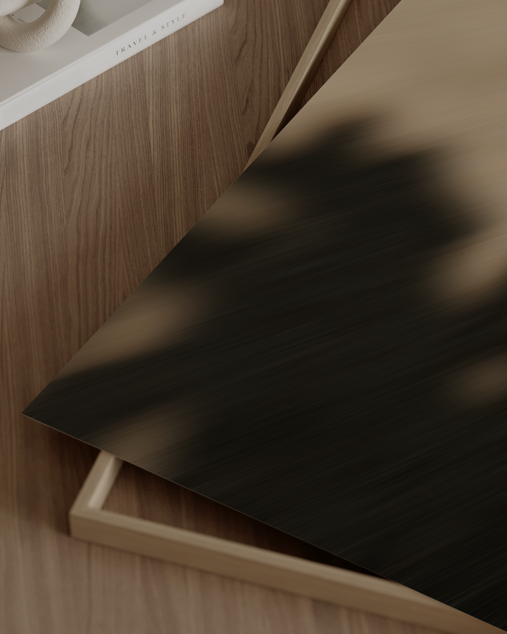 Dark Petal is a minimalist wall art print featuring bold, abstract floral shadows in deep black tones against a warm beige backdrop. The strong contrast and organic shapes create a dramatic yet calming presence, perfect for Japandi living rooms, Scandinavian bedrooms, or warm minimalism interiors. Its moody elegance pairs beautifully with natural wood, textured fabrics, and soft lighting, adding depth and sophistication to any space. A statement piece for those who appreciate nature’s beauty in its most refined, abstract form.