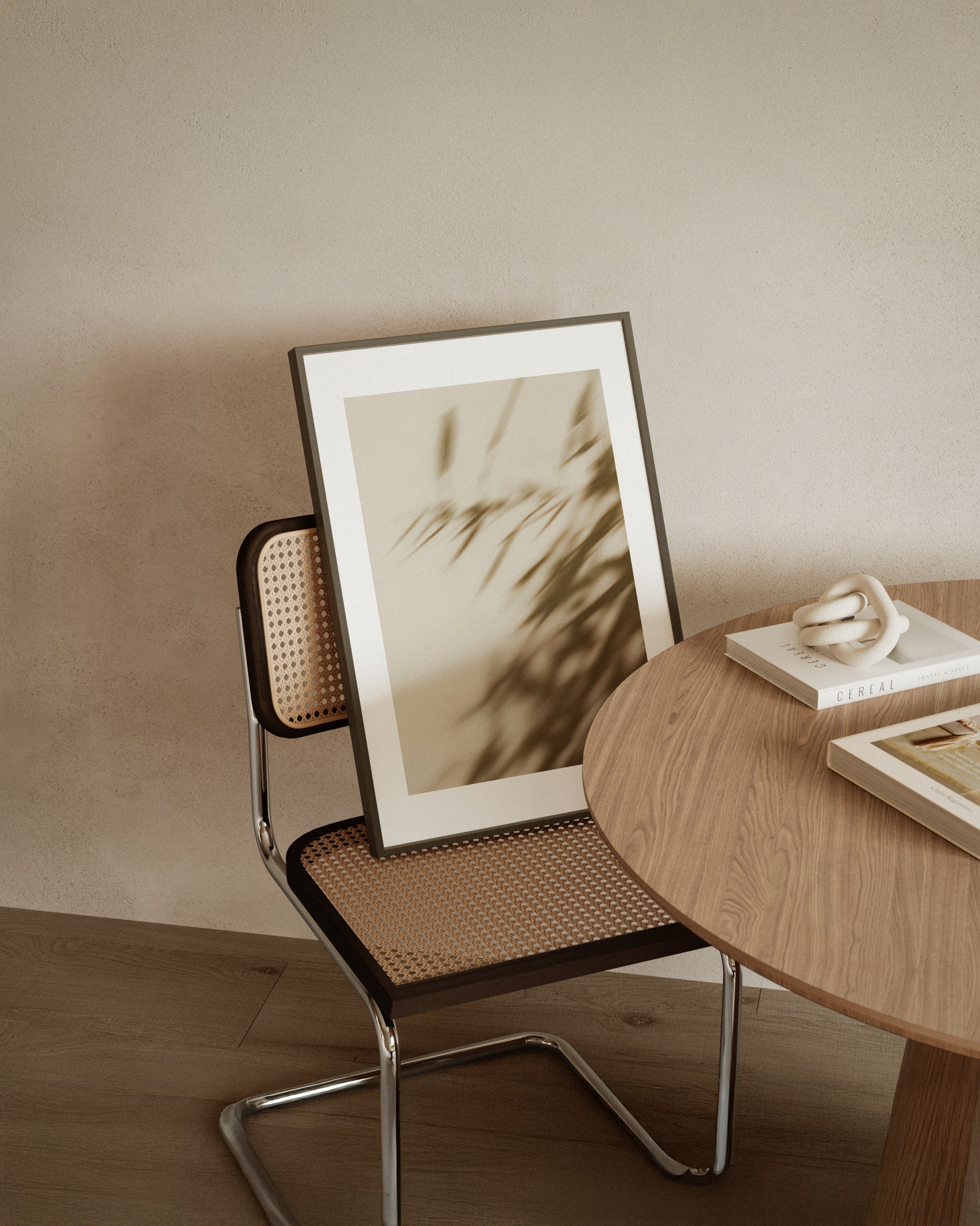 Wind Whisper is a minimalist wall art print featuring the blurred shadow of bamboo silk tree leaves moving across a warm beige backdrop. The elongated, graceful forms convey movement and lightness, evoking the quiet sound of leaves swaying in a gentle breeze. Perfect for Japandi living rooms, Scandinavian style apartments, and warm minimalism interiors, it brings a sense of nature’s rhythm into the home. A calming artwork that reflects harmony, fluidity, and the beauty of subtle, fleeting moments.