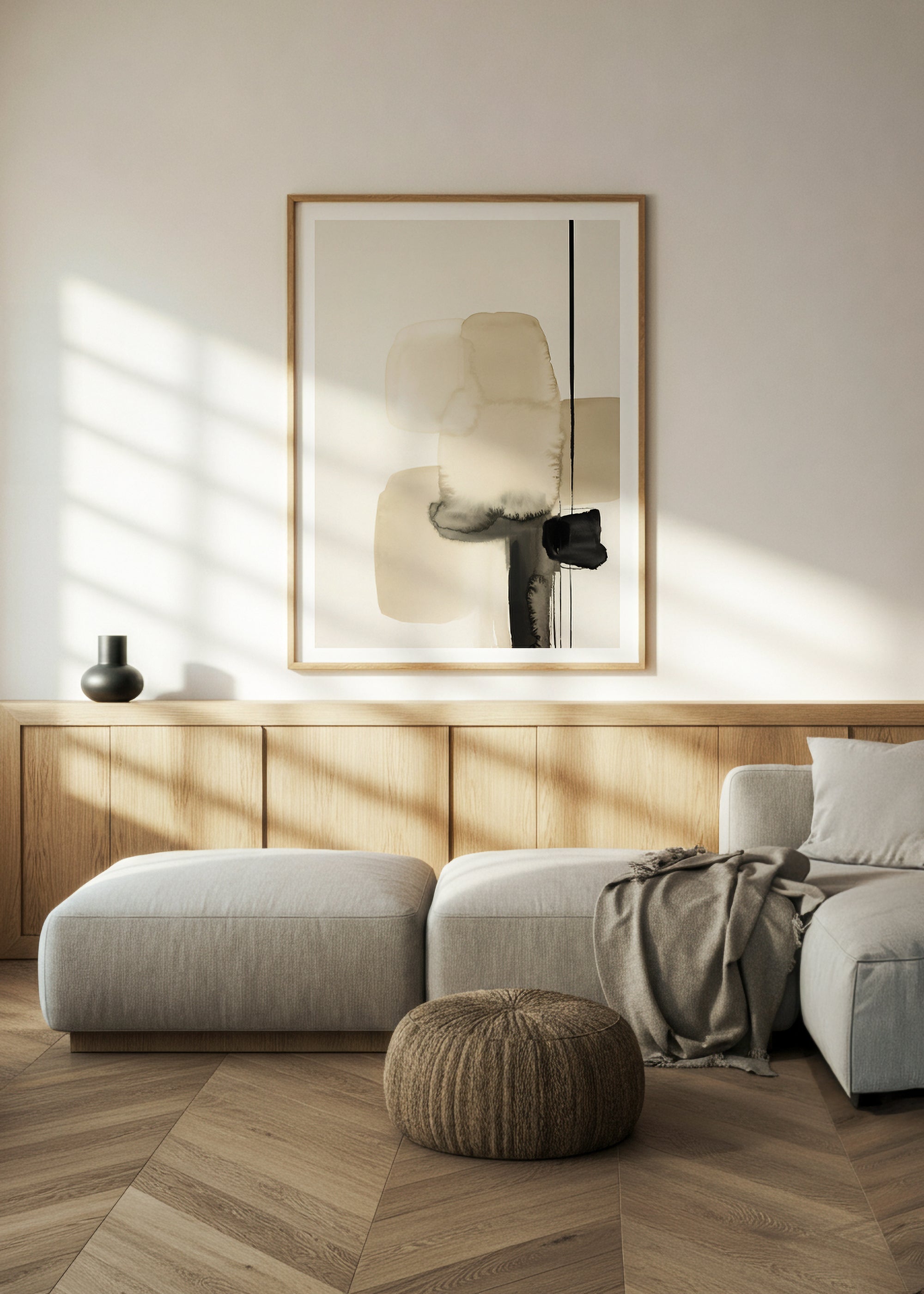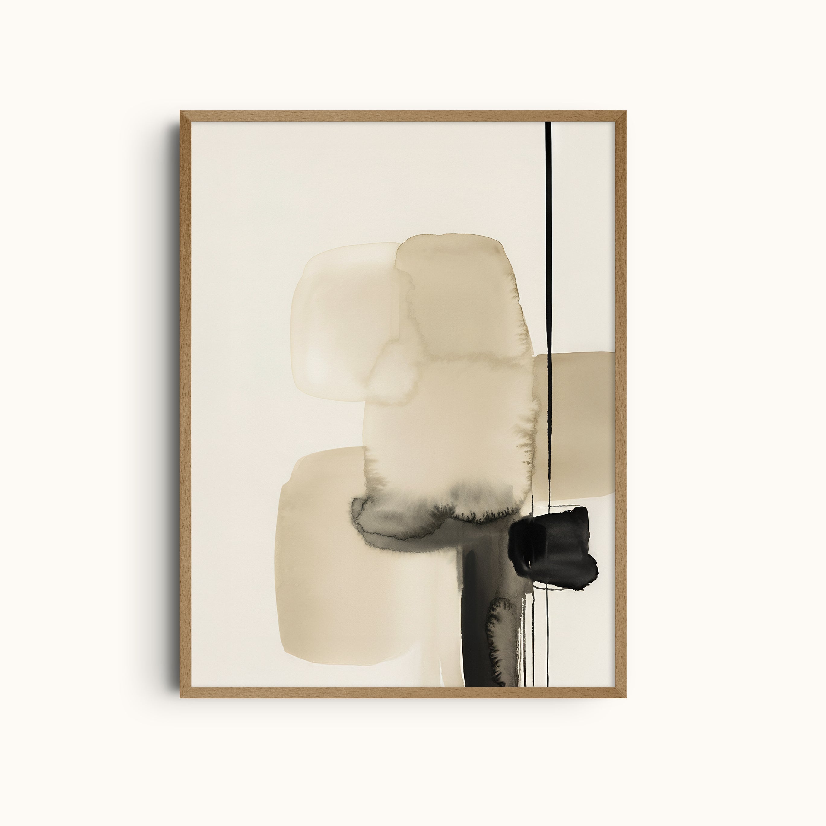Soft Watercolor is a Japandi-inspired abstract watercolor art print that captures calm, movement, and simplicity through gentle beige and black tones. The soft gradients and natural fluidity reflect the essence of modern minimalism and Scandinavian design, bringing warmth and balance to any space.